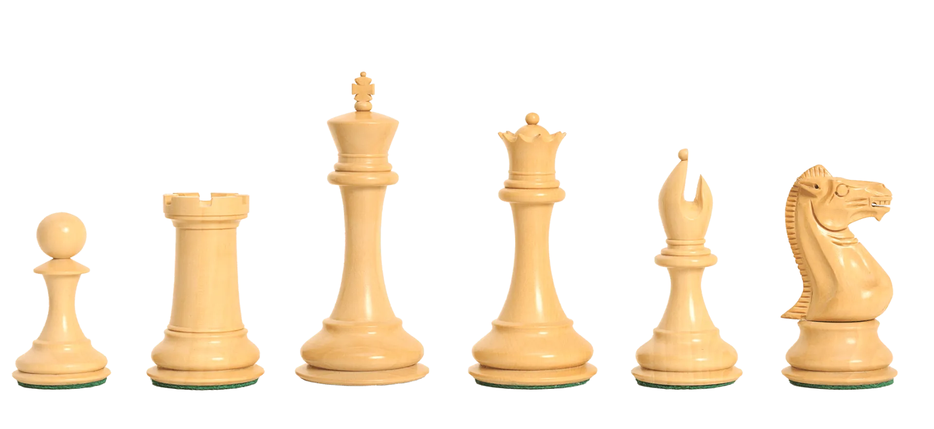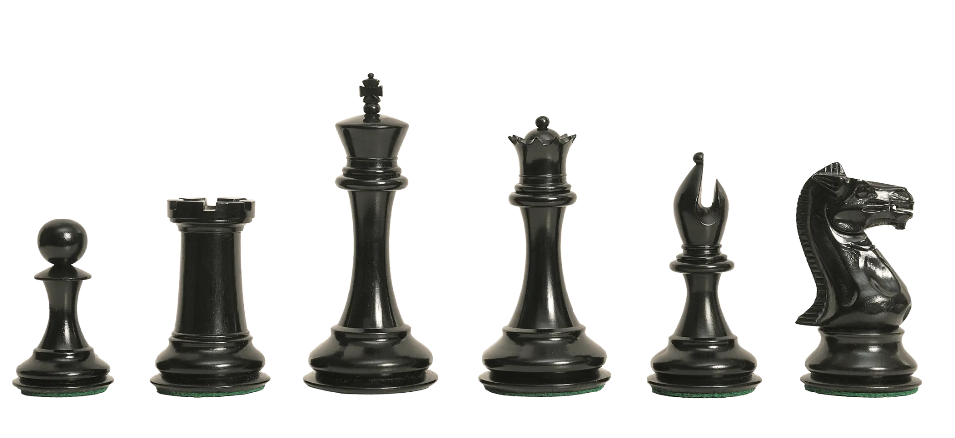 To pamper you, The House of Staunton is proud to offer the Collector Series Luxury Chess set. This full-tournament sized Chess set features. A full tournament-sized Chess set, it features a 4.4" King with a 2.0" diameter base. The Chess pieces are hand carved by our master artisans and crafted out of the highest grade woods. The Chess pieces are heavily weighted with gold embossed English Leather base pads under the Kings, luxurious billiard cloth base pads on the other Chess pieces and a beautiful finish. The Collector Series Luxury Chess set has been crafted to replicate the design and proportions of the original Staunton pattern Chessmen, registered by Nathaniel Cooke in March of 1849 and first manufactured by Jaques of London in September 1849. The distinctive feature of this set is the the open-mitered Bishop and Knight design, which is modeled after the noble steeds from the Greek Parthenon (Elgin Marbles.).