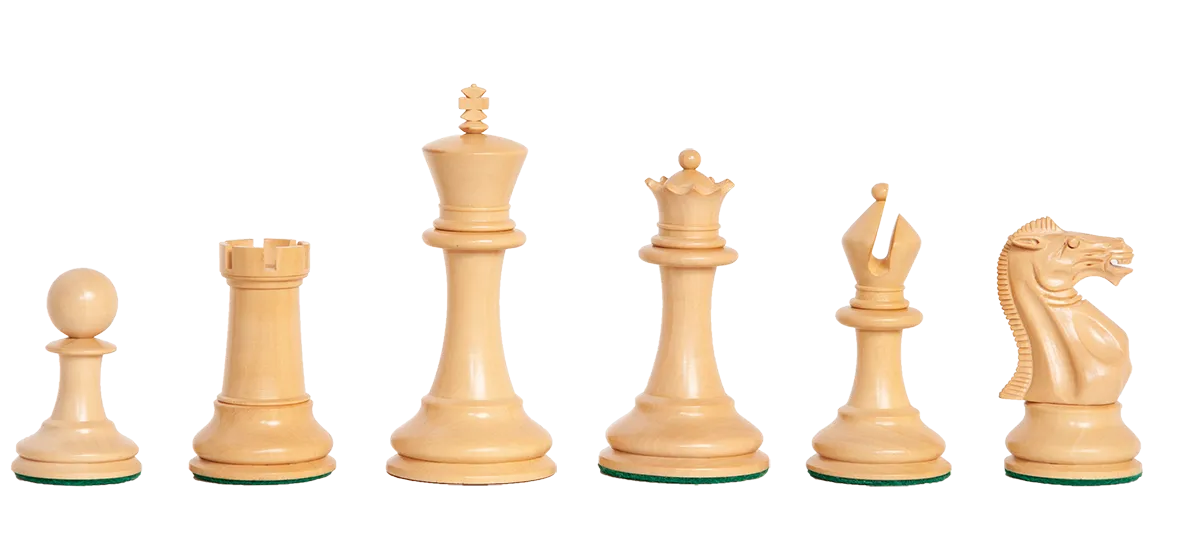 The Chess pieces are hand carved by our master artisans and crafted out of the highest grade woods. The Chess pieces are heavily weighted with luxurious billiard cloth base pads on the Chess pieces and a beautiful finish. The design of the Paulsen Series Chess set embodies the form, board presence and craftsmanship of one of the most celebrated 20th century designs from Jaques of London. The House of Staunton has recaptured the essence of these magnificent Chessmen and made them available on a very limited basis.