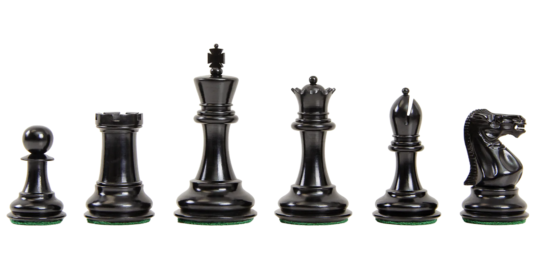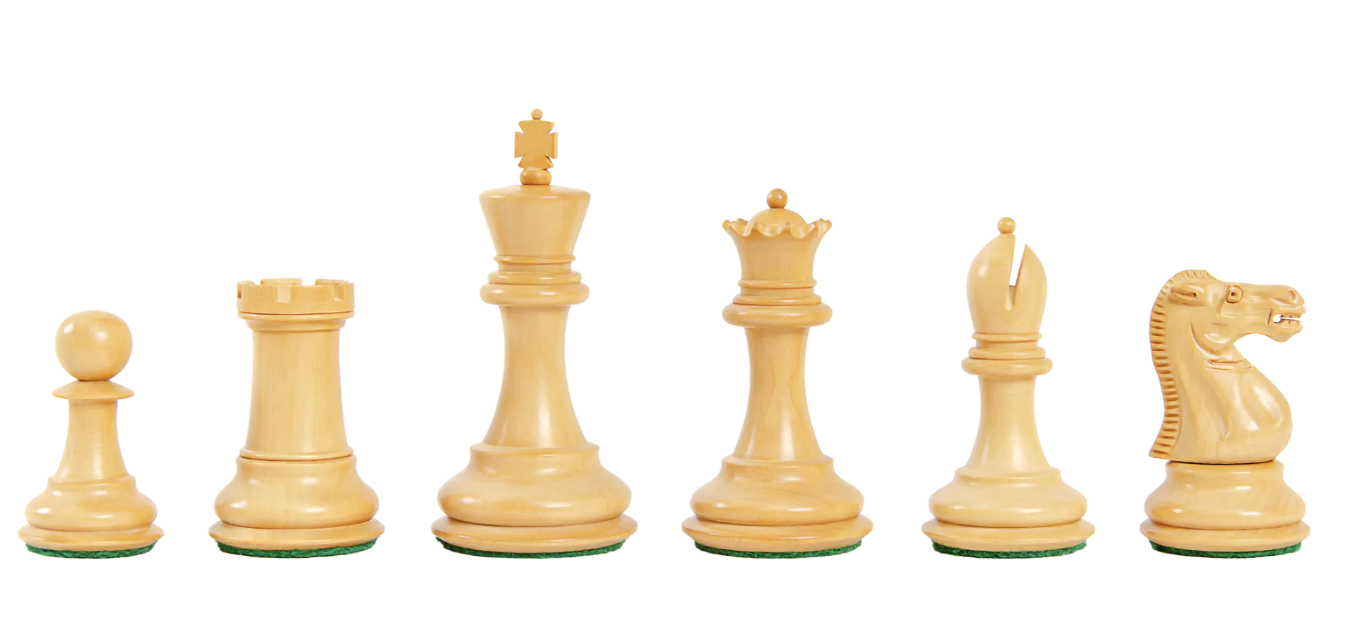 The Chess pieces are hand carved by our master artisans and crafted out of the highest grade woods. The Chess pieces are heavily weighted with luxurious billiard cloth base pads on the other Chess pieces and a beautiful finish. The design of the Bicentennial Series Chess set features the form, board presence and exquisite craftsmanship of the turn-of-the-century Jaques of London Chessmen.