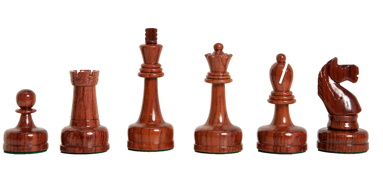The House of Staunton is proud to offer the Tahl Series Chess set from the Camaratta Collection. A full tournament-sized chess set, it features a 3.875" King with a 1.5" diameter base. The chess pieces are hand carved by our master artisans and crafted out of the highest grade woods. The chess pieces are heavily weighted with billiard cloth base pads and a beautiful finish.