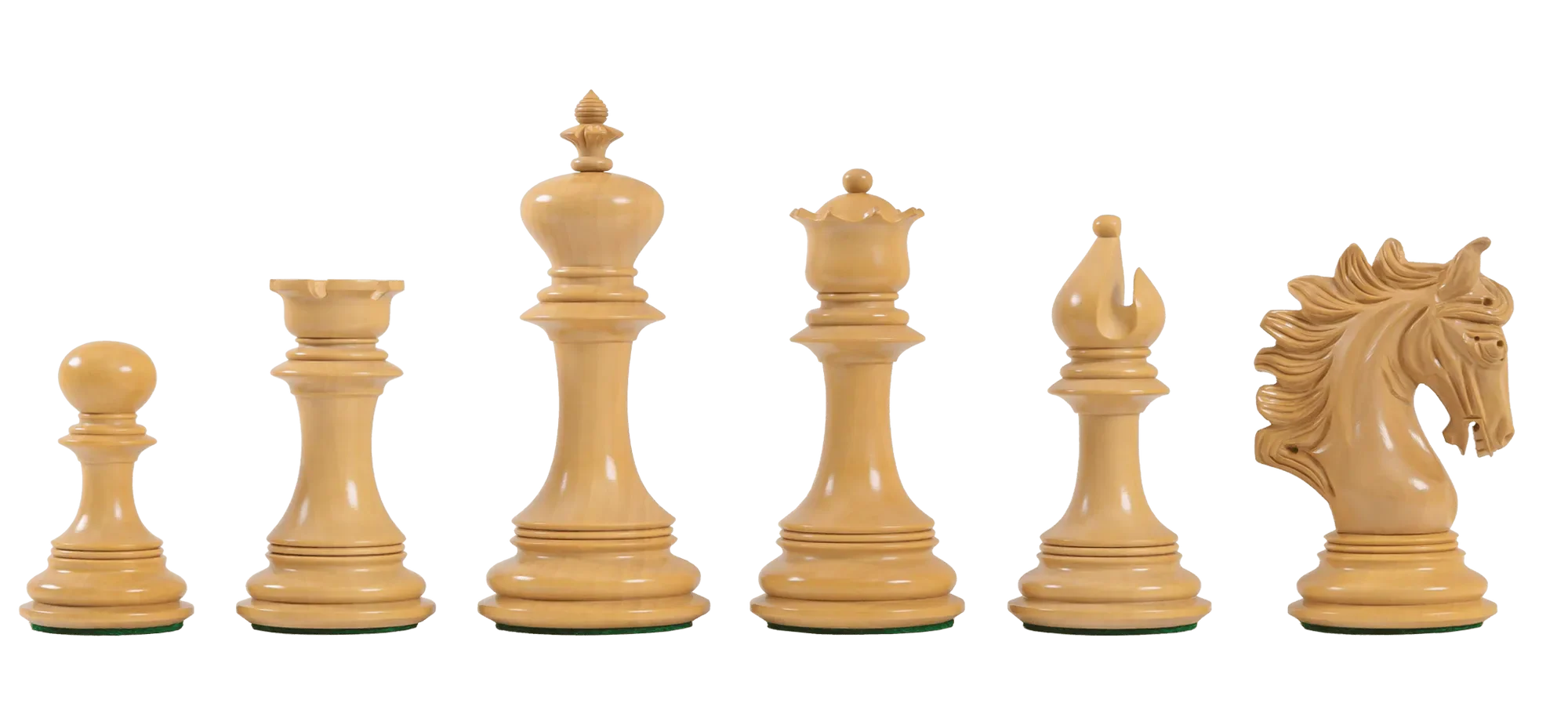 The House of Staunton is proud to offer the Ercolano Series Chess set. A full club-sized Chess set, it features a 4.3" King with a 1.85" diameter base. The Chess pieces are hand carved by our master artisans and crafted out of the highest grade woods. The Chess pieces are heavily weighted with the Kings featuring English Leather embossed with House of Staunton logo. All other pieces feature luxurious billiard cloth base pads and a beautiful finish.