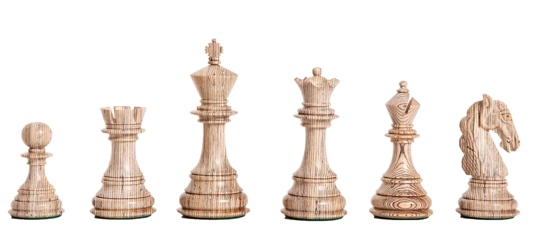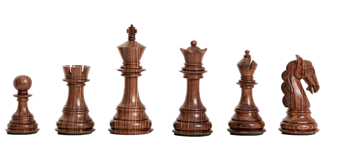 The House of Staunton is proud to offer the Livorno Exotique Series Luxury Chess Set. A full club-sized Chess set, it features a 4.4" King with a 1.75" diameter base. The Chess pieces are hand carved by our master artisans and crafted out of the highest grade woods. The Chess pieces are heavily weighted with green leather base pads for the Kings and luxurious biilliard cloth for the other pieces and a beautiful finish.