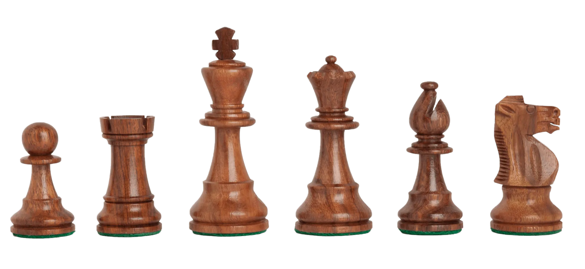 The House of Staunton is proud to offer the French Lardy Series Chess set. A full tournament-sized Chess set, it features a 3.75" King with a 1.5" diameter base. The Chess pieces are hand carved by our master artisans and crafted out of the highest grade woods. The Chess pieces are heavily weighted with luxurious billiard cloth base pads and a beautiful finish.