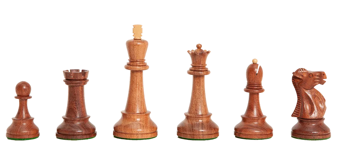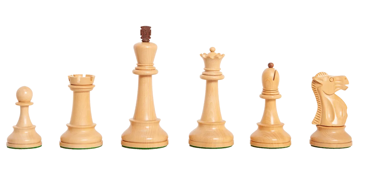 The House of Staunton is proud to offer the Grossmeister Series Chess Pieces. It features a 4.75" King with a 1.8" diameter base. The Chess pieces are hand carved by our master artisans and crafted out of the finest woods. The Chess pieces are heavily weighted with luxurious billiard cloth base pads under the pieces and a beautiful finish.