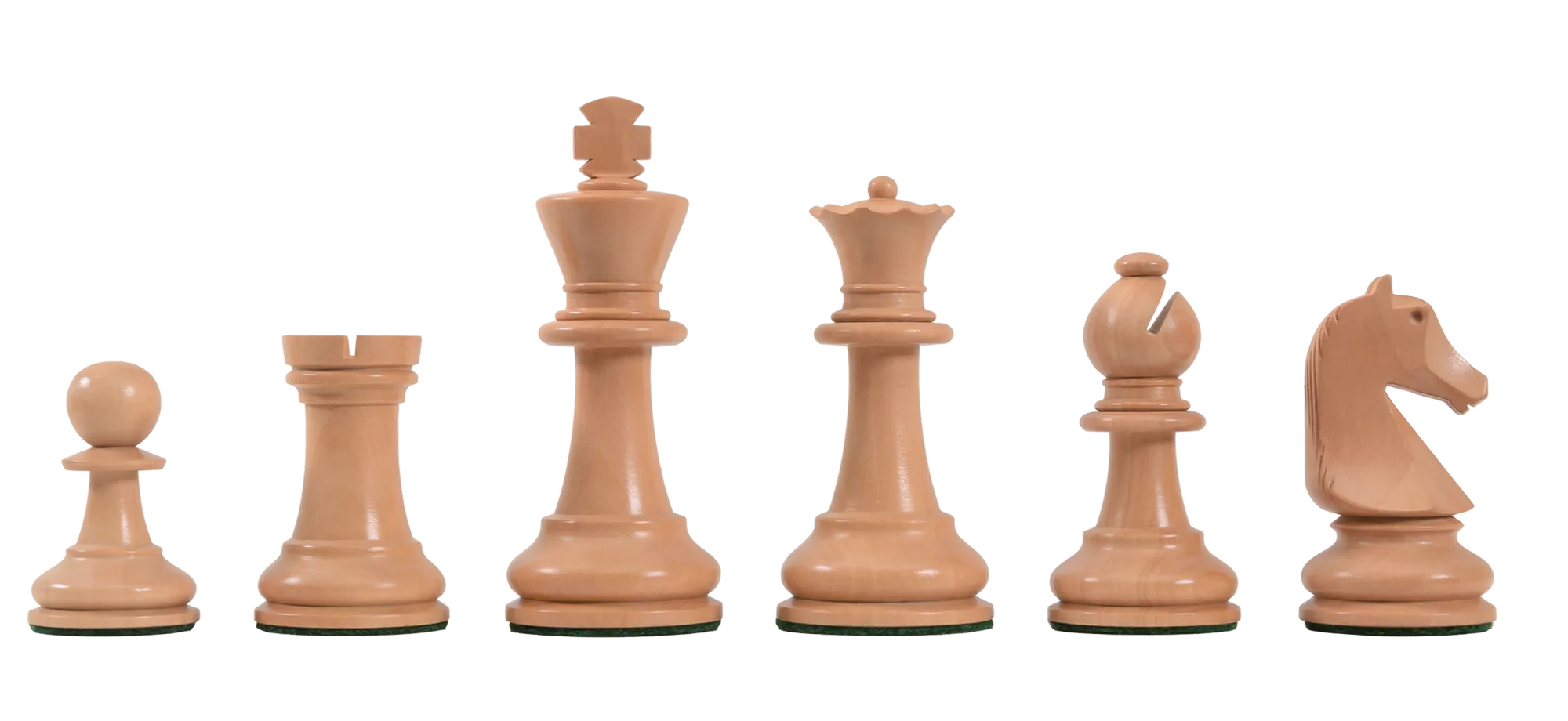 The House of Staunton is proud to offer the Henri Chavet Series Chess set. It features a 3.8'' King with a 1.55'' diameter base. The Henri Chavet Design Chess Set is characterized by its timeless aesthetic appeal and its attention to detail. The pieces are crafted from the finest materials, often incorporating for their rich tones and natural beauty. Each piece is carefully carved and polished to perfection, exuding a sense of sophistication and refinement. The king, standing tall and regal, commands the board with its graceful silhouette and intricate crown. The queen, a symbol of power and grace, is depicted with flowing lines and delicate features. The bishops, knights, rooks, and pawns are equally captivating, their distinctive shapes capturing the essence of their respective roles on the chessboard. The Henri Chavet Design Chess Set has gained international recognition and is often regarded as a collector's item and a symbol of luxury. Its timeless design transcends trends and fashion, making it a cherished possession that can be passed down through generations. Whether used for intense competitive play or simply as a decorative piece, the Henri Chavet Design Chess Set embodies the spirit of intellectual challenge, creativity, and aesthetic appreciation. It serves as a reminder of the timeless allure of the game of chess and the enduring legacy of Henri Chavet, who sought to elevate it to the realm of art.