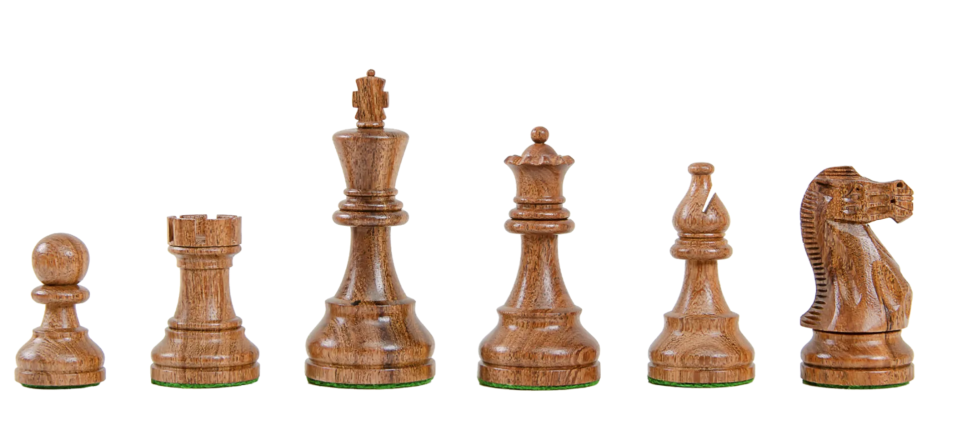 The House of Staunton is proud to offer the International Series Chess set. A full tournament-sized chess set, it features a 3.875" King with a 1.575" diameter base. The chess pieces are hand carved by our master artisans and crafted out of the highest grade woods. The chess pieces are heavily weighted with luxurious billiard cloth base pads and a beautiful finish.
