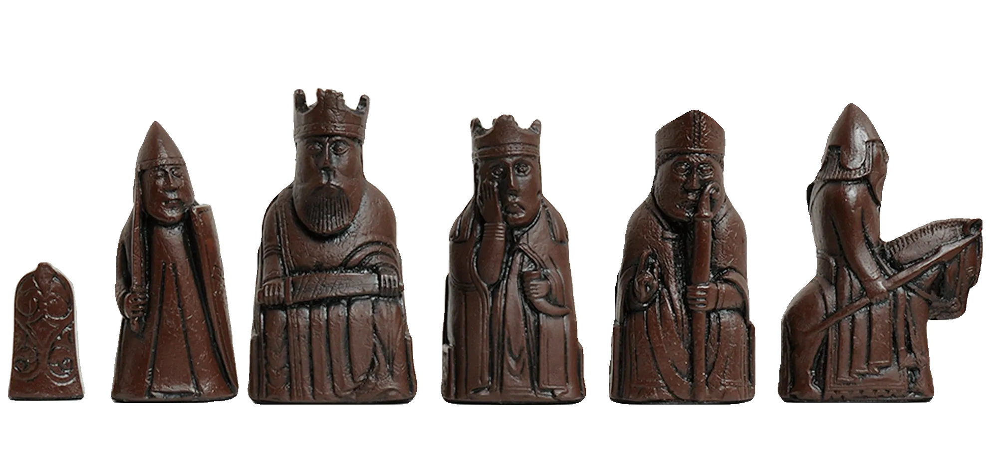 The Isle of Lewis Antiqued Chess Pieces - Brown and Natural The Isle of Lewis Antiqued Chess Pieces - Brown and Natural