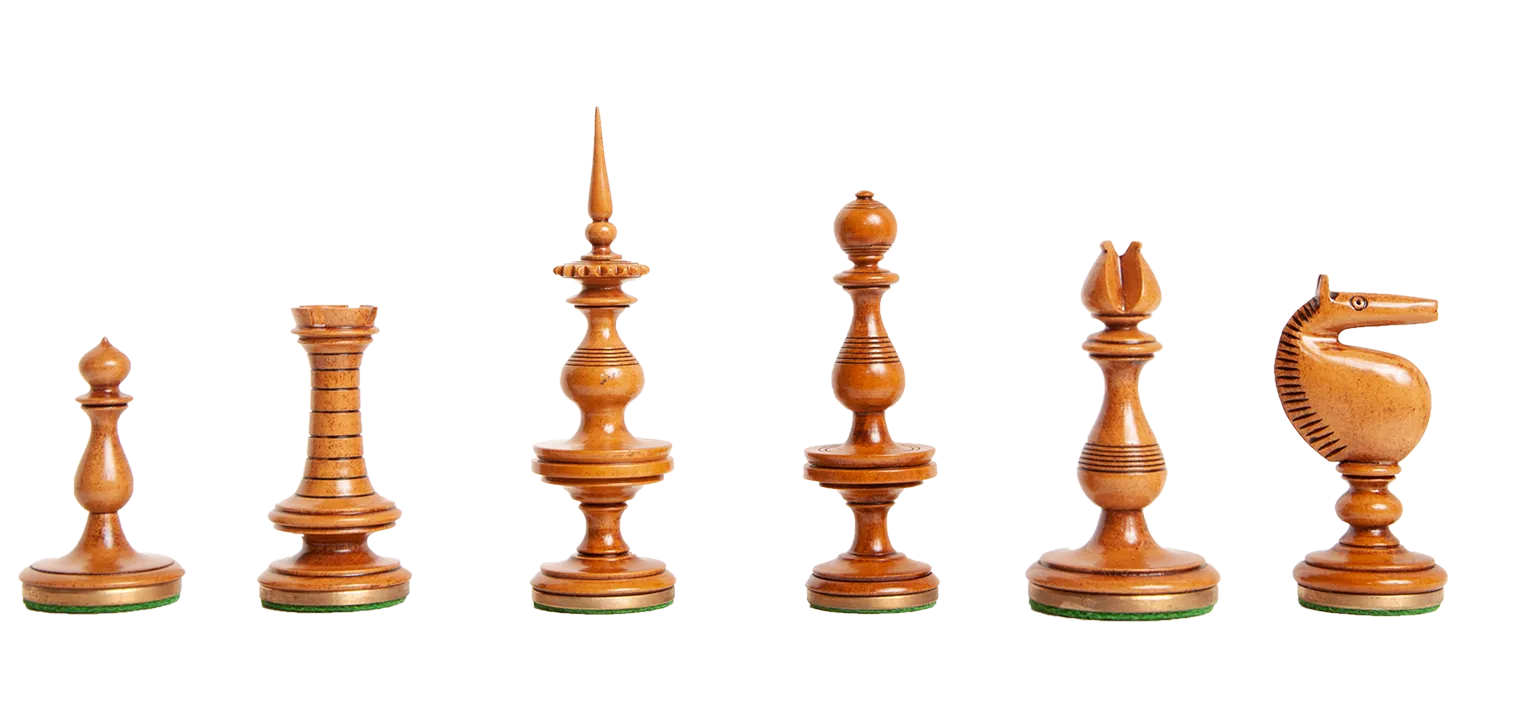 The Killarney chessmen, like our other reproduction Victorian era playing sets, have been reintroduced with those special touches that only the Maestro can add, and are part of the Camaratta Pre-Staunton Signature Series.