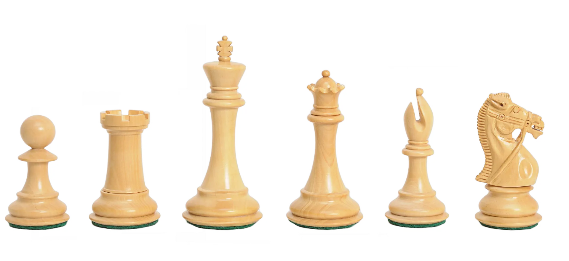 The House of Staunton is proud to offer the Leicester Series Chess set. It features a 4.0" King with a 1.875" diameter base. The Chess pieces are hand carved by our master artisans and crafted out of the highest grade woods. The Chess pieces are heavily weighted with luxurious billiard cloth base pads and a beautiful finish.