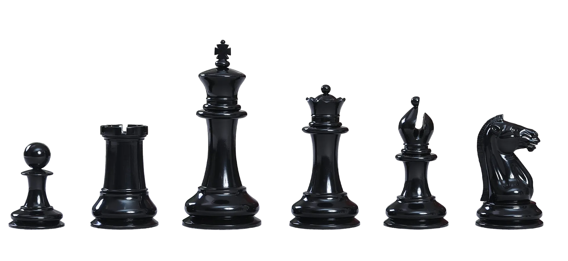 The Staunton Bishop’s wide, open-mitered headpiece was an abstract representation of a flame (tongues of fire), the ecclesiastical representation for Wisdom, which in Christianity represents enlightenment imparted by the Holy Spirit. Contemporary Bishop designs have lost that original religious connection. The Rook design is self-evident. The Kings and Queens are represented by