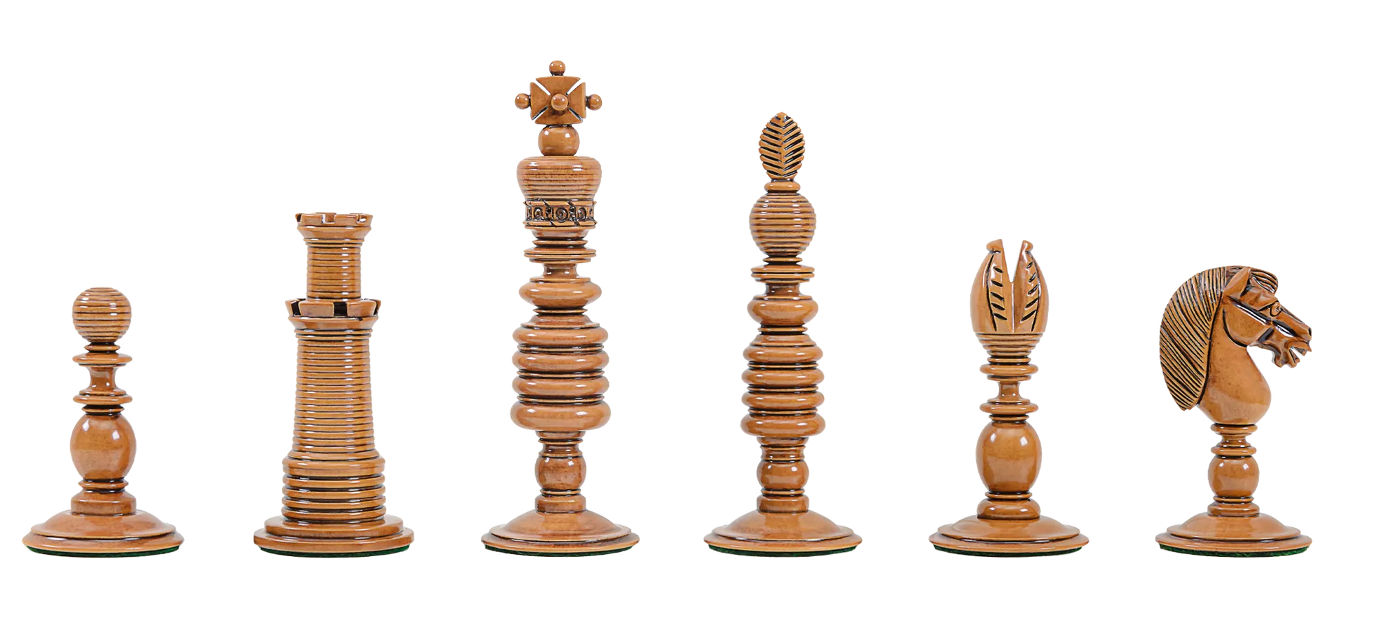 "Crafted to mimic the exquisite design and detail of the Circa 1800 Chessmen from the renowned workshop of George Merrifield."