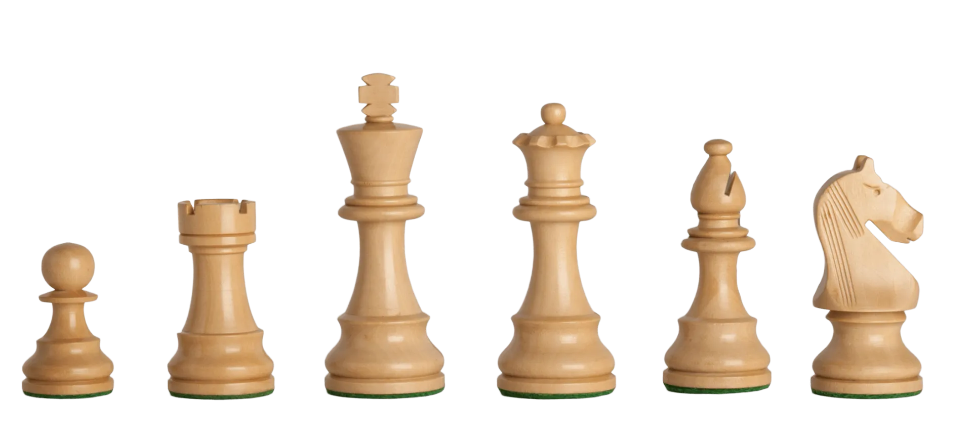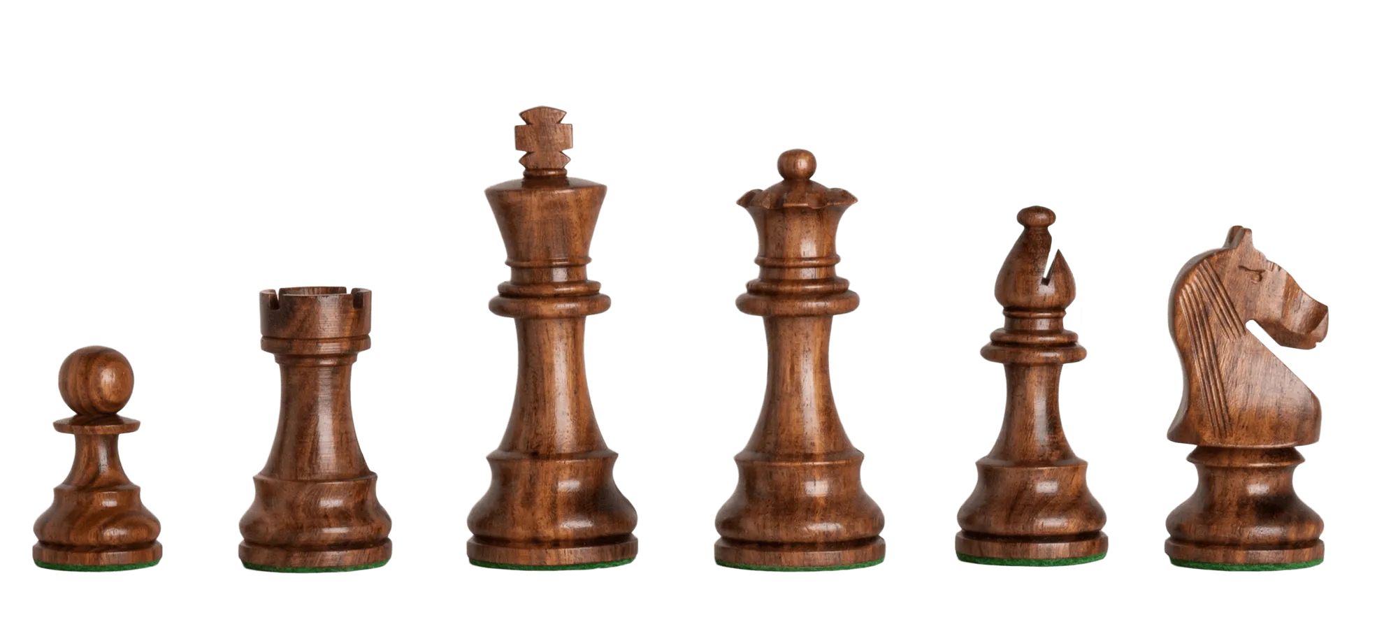 The House of Staunton is proud to offer the Noble Series Chess set. A full tournament-sized Chess set, it features a 3.75" King with a 1.375" diameter base. The Chess pieces are hand carved by our master artisans and crafted out of the highest grade woods. The Chess pieces are heavily weighted with luxurious billiard cloth base pads and a beautiful finish.