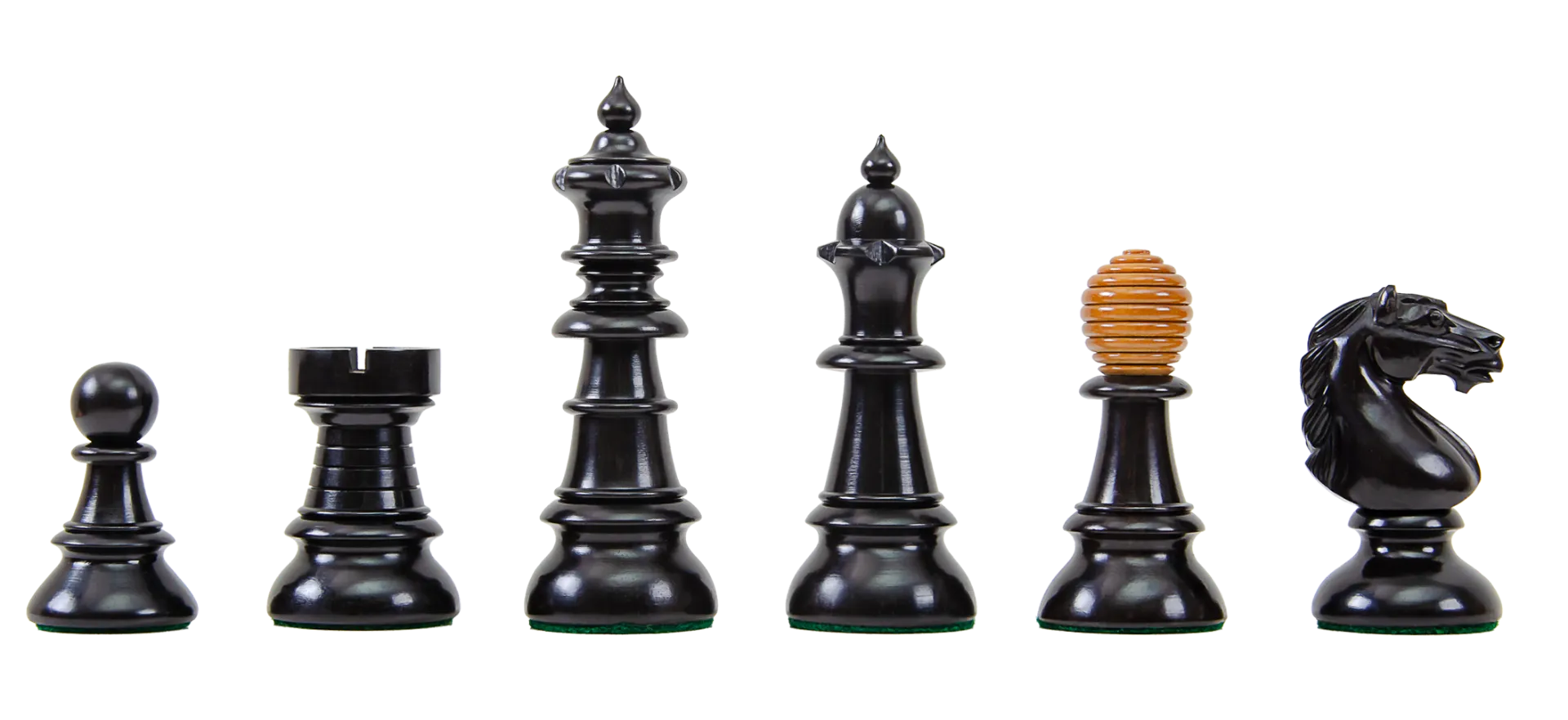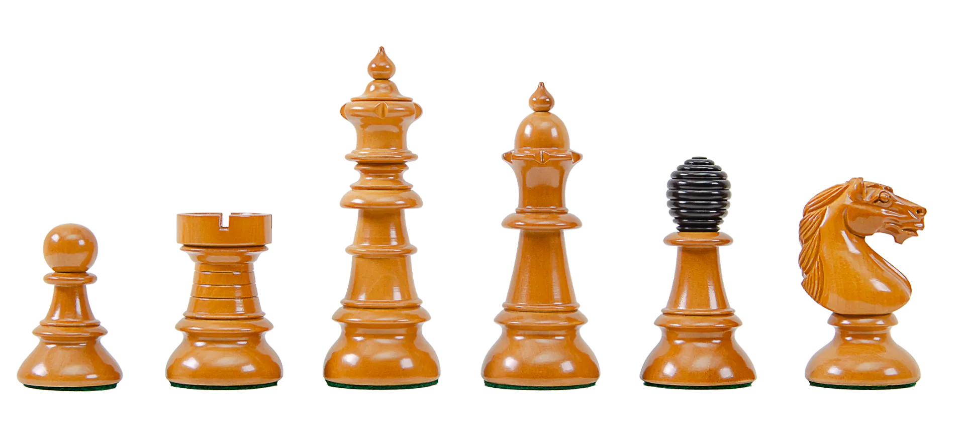The House of Staunton is proud to offer the Old Vienna Coffeehouse Series Chess Pieces. It features a 4.5" King with a 1.45" diameter base. The Chess pieces are hand carved by our master artisans and crafted out of the finest woods. The Chess pieces are heavily weighted with luxurious billiard cloth base pads under the pieces and a beautiful finish.