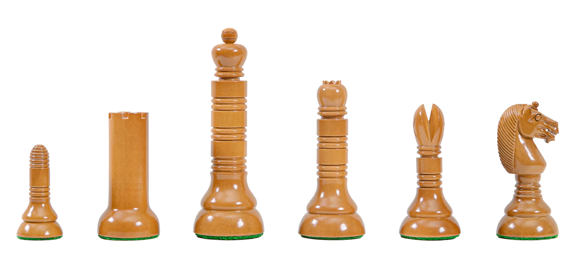 The House of Staunton is proud to introduce the masterful Philidor Series Chess Set. Part of our Timeless Collection, the Philidor Series Chess set is exact reproduction of one of the least known Chess sets every produced, the Philidor Chessmen Circa 1850 Pattern Chessmen. These Chessmen feature a 3.9" King with a 1.375" Diameter base and are weighted. These Chessmen are an exact match to the original detail, down to the smallest details!