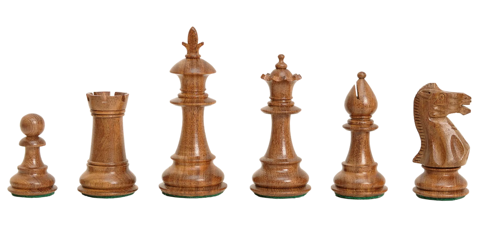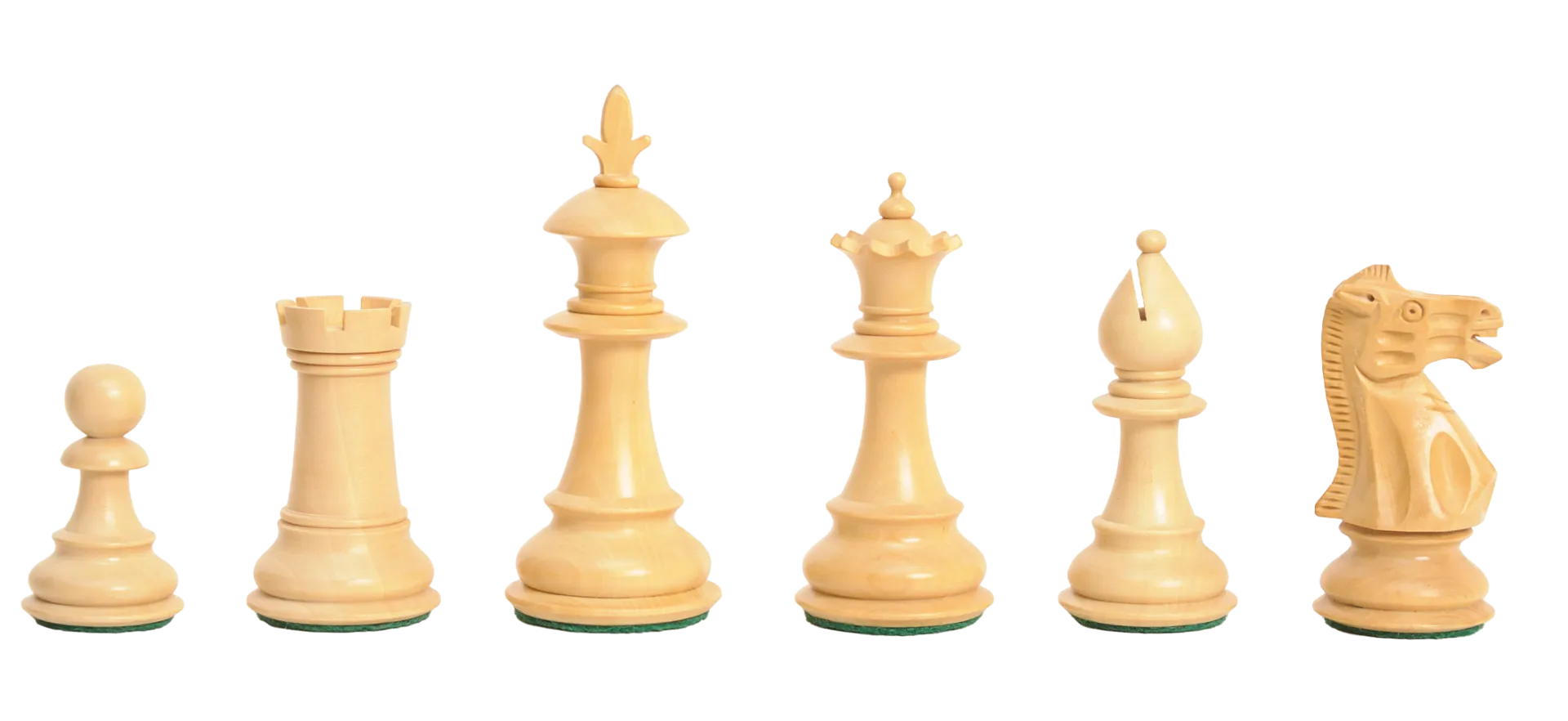 The House of Staunton is proud to offer the Royale Series Chess set. A full tournament-sized Chess set, it features a 4.0" King with a 1.6" diameter base. The Chess pieces are hand carved by our master artisans and crafted out of the highest grade woods. The Chess pieces are heavily weighted with luxurious billiard cloth base pads and a beautiful finish.