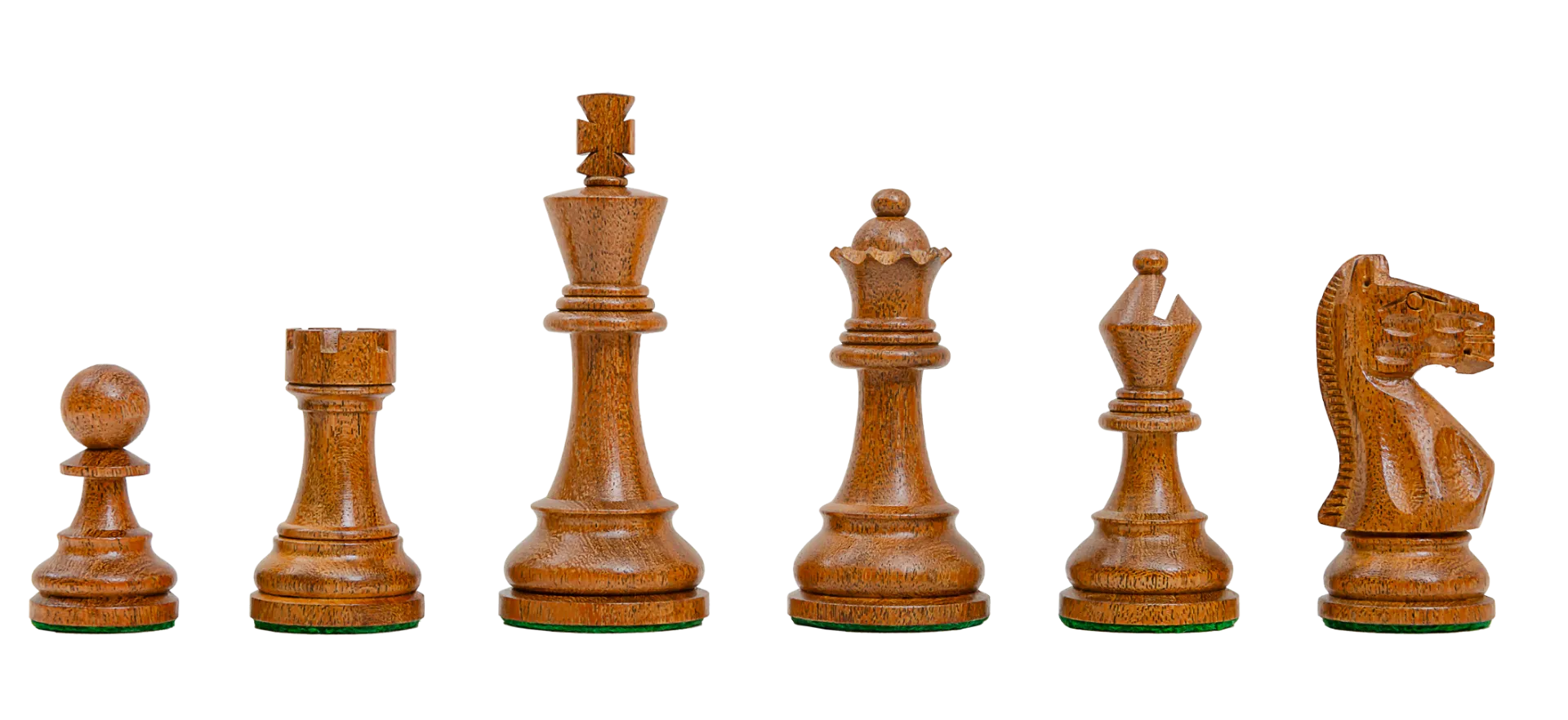 The House of Staunton is proud to offer the Sovereign Series Chess set. It features a 4.0" King with a 1.55" diameter base. The Chess pieces are hand carved by our master artisans and crafted out of the highest grade woods. The Chess pieces are heavily weighted with luxurious billiard cloth base pads and a beautiful finish. These Chessmen have been designed for those players looking for exceptionally well-crafted wooden Chessmen at a very reasonable price.
