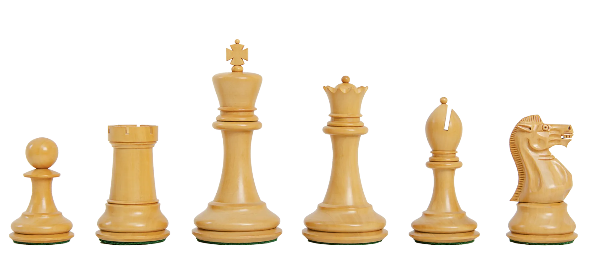 The House of Staunton is proud to offer the St. Petersburg Series Chess set. It features a 4.4 King with a 2" diameter base. The Chess pieces are hand carved by our master artisans and crafted out of the highest grade woods. The Chess pieces are heavily weighted with luxurious billiard cloth base pads on the other Chess pieces and a beautiful finish. The design of the St. Petersburg Series Chess set embodies the form, board presence and craftsmanship of one of the most celebrated turn-of-the-century designs from Jaques of London. The House of Staunton has recaptured the essence of these magnificent Chessmen and made them available on a very limited basis.