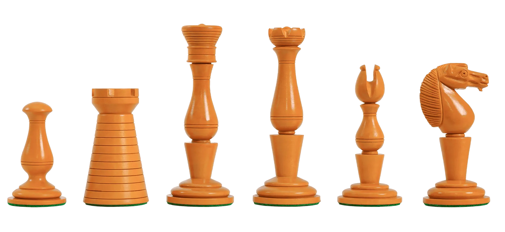 The House of Staunton is proud to introduce our newest masterpiece - The Strand Timeless Series Chessmen. Part of our Timeless Collection, it is exact reproduction of one of the most famous Chess sets in the world, the Circa 1820 Grand Cigar Divan Pre-Staunton Pattern Chessmen. These Chessmen feature a4.4" King with a 1.65" Diameter base and are heavily weighted. These Chessmen are an exact match to the original Chessmen, down to the smallest details!