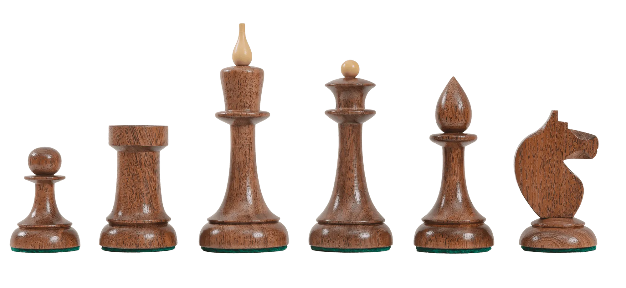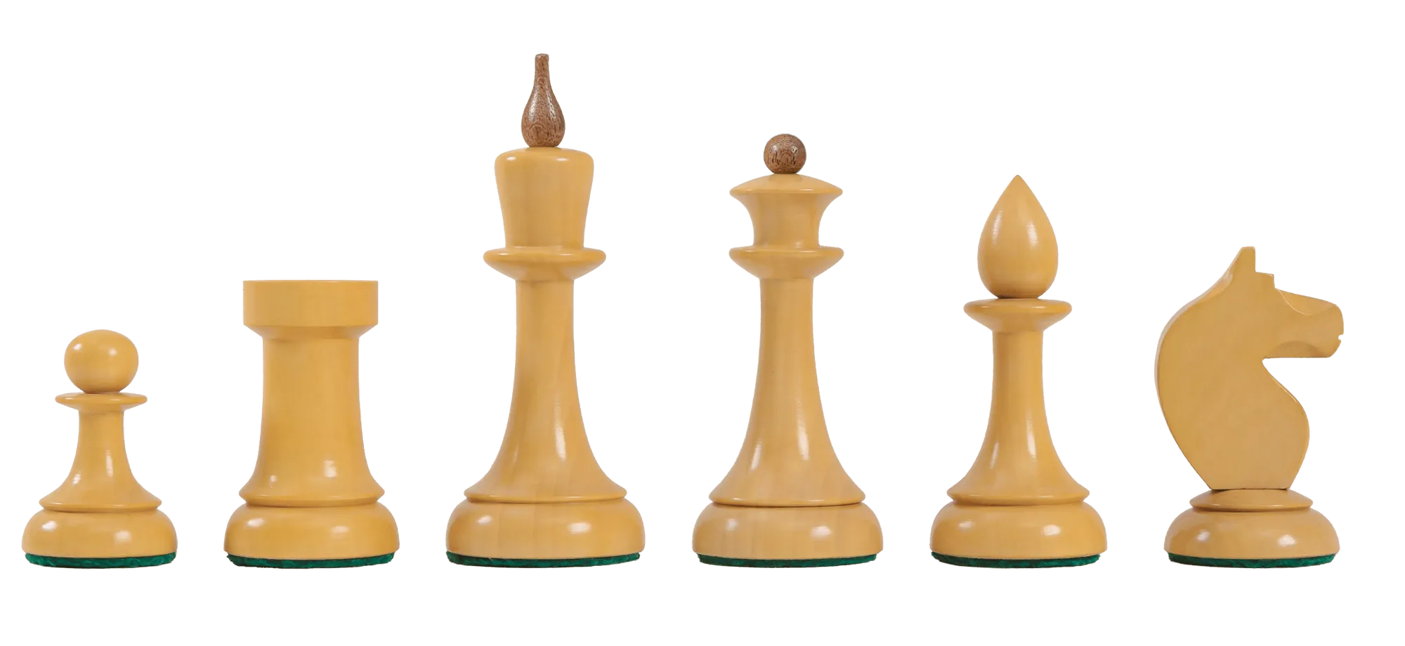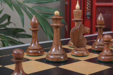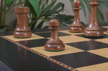 The House of Staunton is proud to introduce the 2025 edition of "The Queen's Gambit" Inspired chess pieces. This is a full tournament-sized chess set, it features a 3.75" King with a 1.5" diameter base. The Chess pieces are hand carved by our master artisans and crafted out of the highest grade woods. The Chess pieces are heavily weighted with luxurious billiard cloth base pads and a beautiful finish.